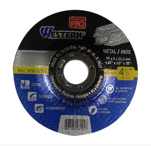 Compatível com esmerilhadeiras que utilizam discos de 115 mm, é ideal para desbaste de soldas, rebarbas e superfícies metálicas. Sua espessura de 3 mm proporciona bom equilíbrio entre remoção de material e controle durante o uso.
